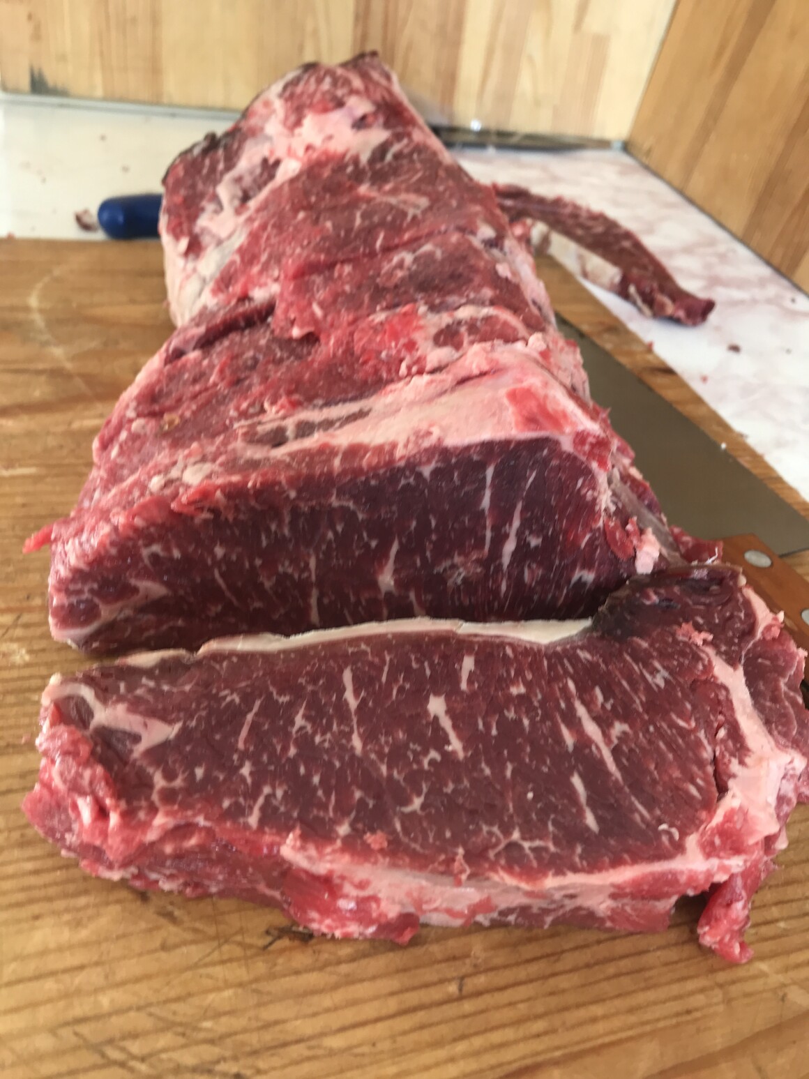 Получаемый из мраморной части поясницы, этот стейк обладает идеальным соотношением мяса и жира, что придаёт ему невероятную сочность.
