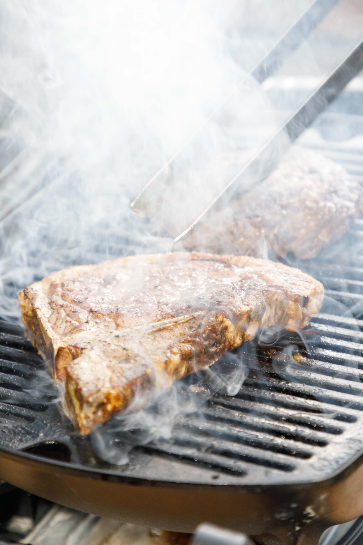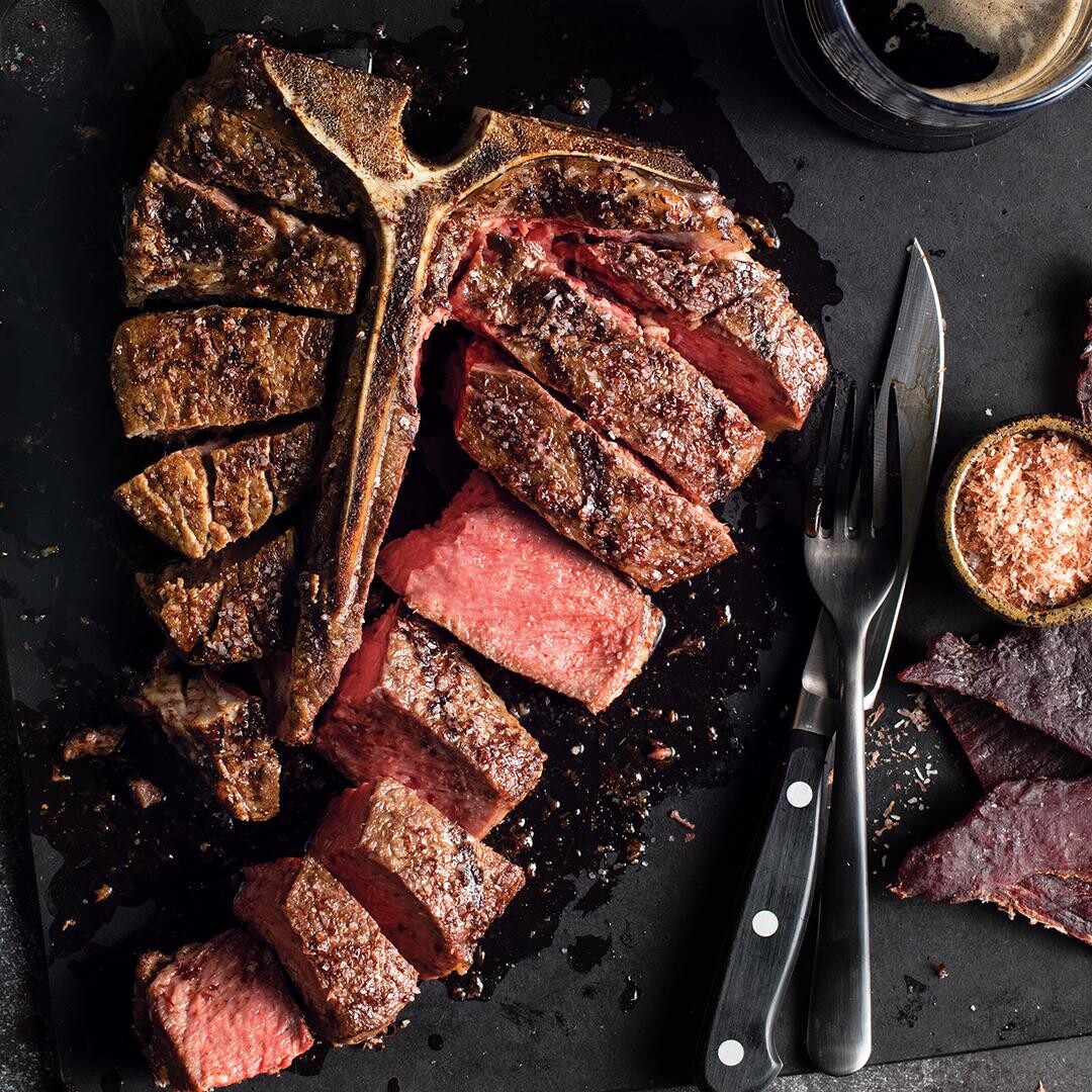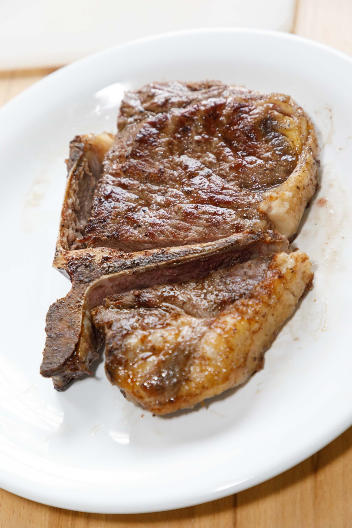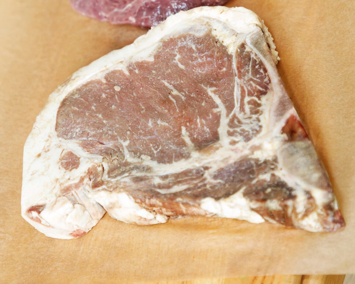 Его легко узнать по Т-образной кости, которую обрамляет нежная мраморная мякоть. Собственно и название он получил благодаря этой особенности.