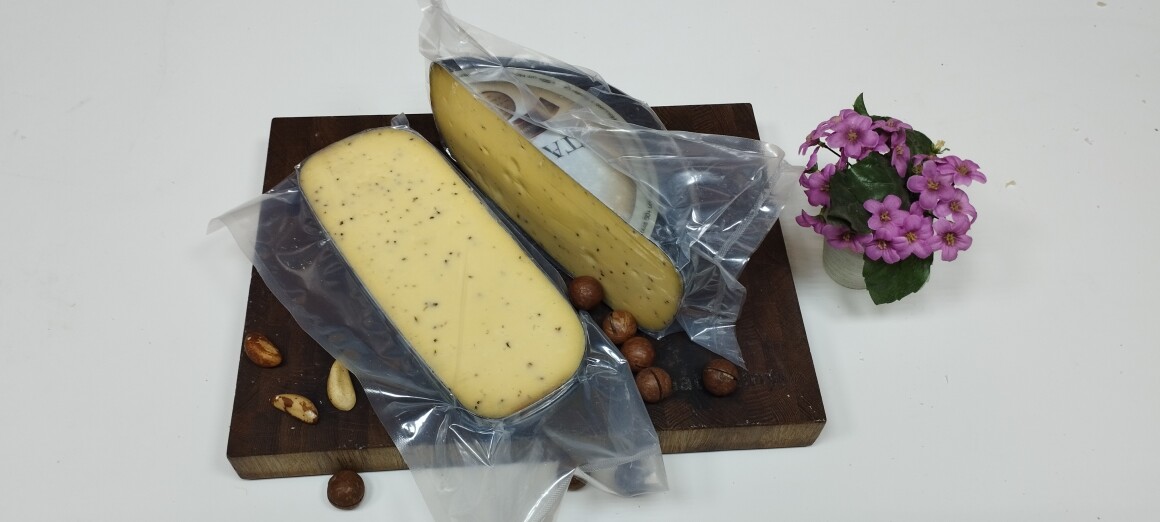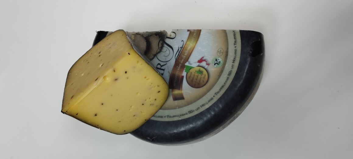 Коровий сыр со стружкой из черного трюфеля впечатляет своим изысканным и утонченным ароматом. Трюфель, ценимый за свою редкость, придаёт ему запах влажного леса и осенних листьев, во вкусе преобладают ореховые и цветочные нотки.
